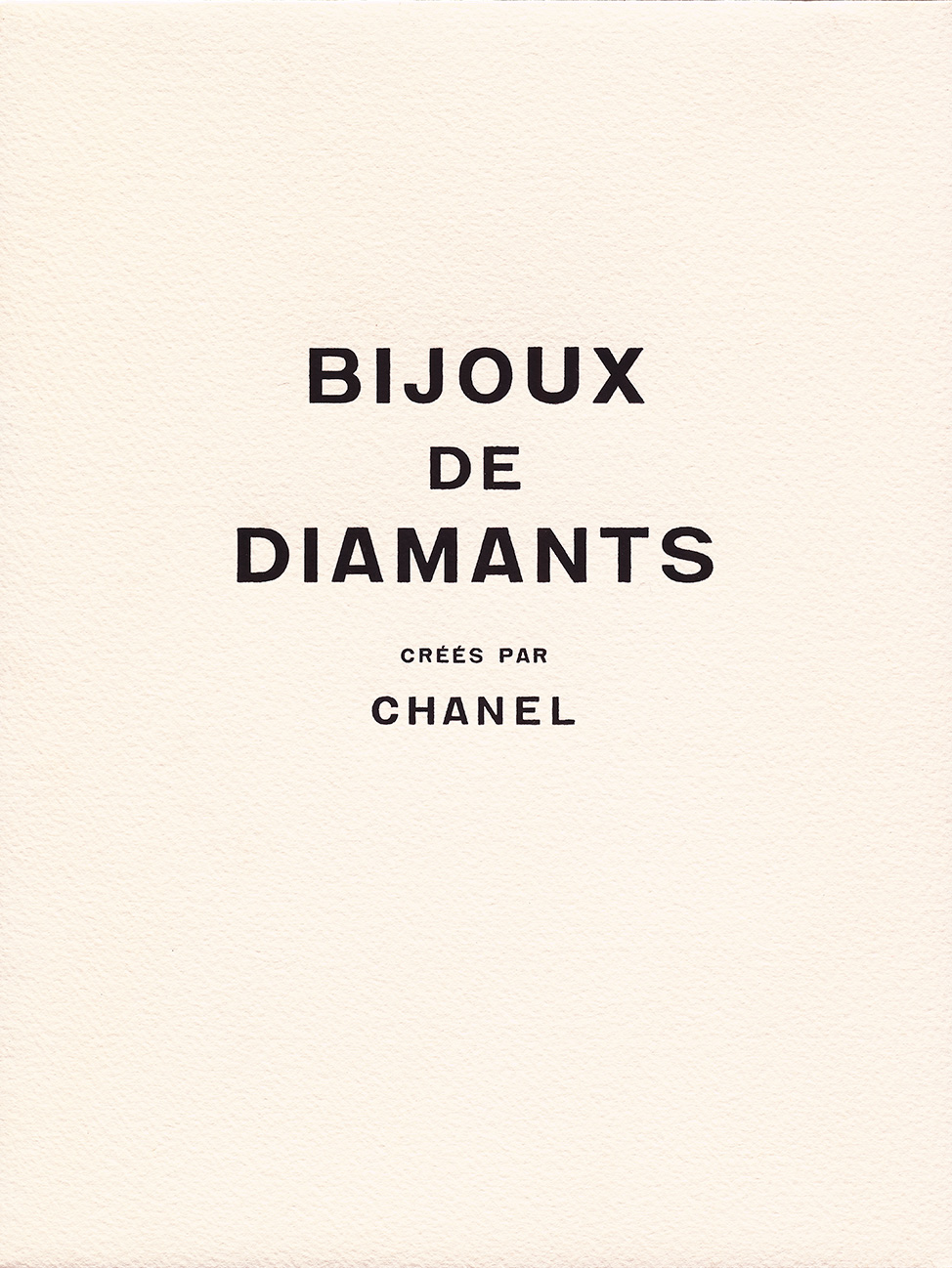 “Bijoux de Diamants”钻石珠宝系列的华美与璀璨远超其字面之义。全系列共约50件作品,以铂金和黄18K金镶嵌白钻和黄钻打造。这些珠宝为日常佩戴而设计,闪耀着璀璨光芒。目前记录在案的作品中,有22件集中于一幅天空的画卷中,由星辰、彗星、月亮与太阳构成。另外17件作品,香奈儿女士在视觉上打造出幻象效果,演绎灵动的缎带、舞动的流苏与轻盈的羽毛。同时,还有8件作品展现螺旋、圆形、方形与十字形的极简几何美感。一系列精彩纷呈的作品,在近一个世纪后,逐渐揭开了神秘的面纱。相关描述中曾被提及的数字“3”、“5”和“7”形状的胸针,设计非凡,可惜至今仍下落不明。2012年,一部由Pathé Gaumont拍摄的纪录片再度公映。这部影片曾在法国所有影院的电影新闻环节播放,这个环节是法国新闻节目Journal Télévisé的前身。这部短片拍摄于嘉柏丽尔·香奈儿在圣·奥诺雷街29号的私人宅邸,介绍了“Bijoux de Diamants”钻石珠宝系列中具有代表性的作品。