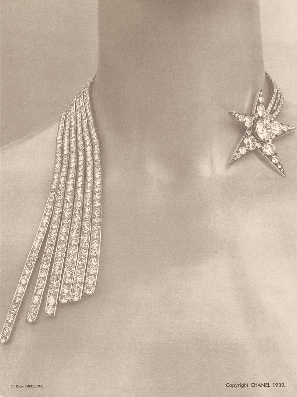 在创作“Bijoux de Diamants”钻石珠宝系列时,香奈儿女士选择了呈现自由感。让女性自由选择如何生活。自由地行动。自由选择能展现自己鲜明个性的珠宝,而非沦为展示华美钻石却了无生趣的模特。她们可以自主选择在衣物或发间佩戴点缀新月的羽毛、流苏或蝴蝶结,或者同时佩戴星辰、太阳与月亮,令日与夜交汇。一条项链可变换为三圈手链,吊坠可取下作为胸针佩戴。这一系列呈现了前所未有的可能性,因其创新的理念备受媒体赞誉。这些珠宝作品能够变换佩戴方式,令女性能够随心所欲地呈现自己的造型。“Bijoux de Diamants”钻石珠宝系列不仅超越潮流,更令潮流显得平庸。